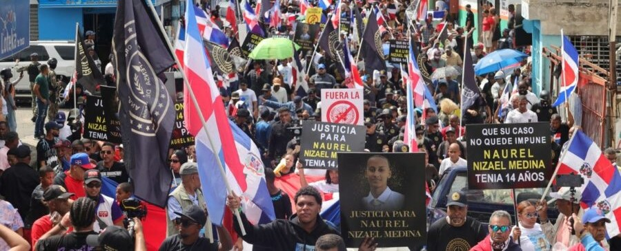 .- Cientos de personas marcharon ayer domingo 15 de febrero convocadas por la Antigua Orden Dominicana en el sector Katanga, Los Mina, municipio Santo Domingo Este, para reclamar justicia por la muerte de un adolescente de 14 años presuntamente a manos de dos haitianos y exigir la deportación de estos extranjeros que estén en condición migratoria irregular.