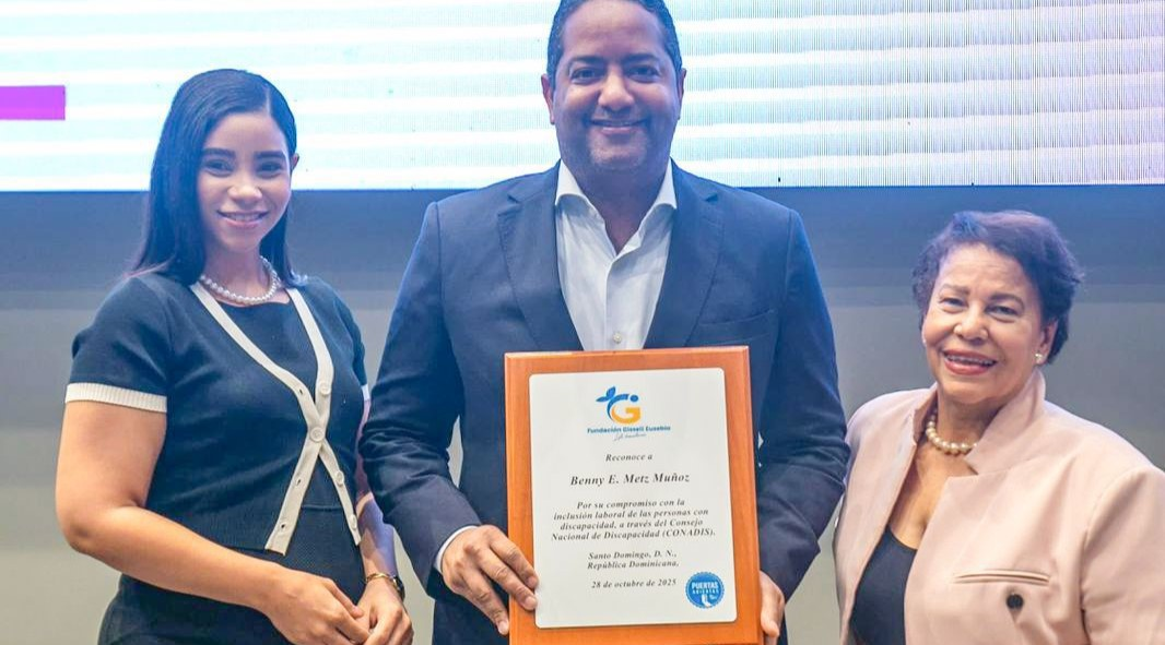Santo Domingo, R.D. – El presidente del Consejo Nacional de Discapacidad (CONADIS), Benny Metz, fue reconocido por la Fundación Gissell Eusebio Life Transformer por su destacada trayectoria, compromiso y liderazgo en la promoción de los derechos de las personas con discapacidad, así como por su labor en la implementación de políticas e iniciativas que impulsan la inclusión social y laboral en la República Dominicana.