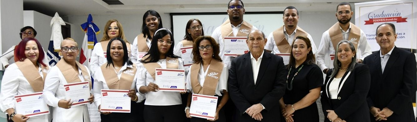 SANTO DOMINGO ESTE. -Más de 300 colaboradores de la empresa de zona franca Hanes Supply Chain Holdings, entidad asociada a la Multinacional canadiense Gildan Corporation, fortalecieron sus competencias técnicas y profesionales tras culminar exitosamente un proceso de formación desarrollado por el Instituto Nacional de Formación Técnico Profesional (INFOTEP), como parte del Programa INFOTEP–Zonas Francas.