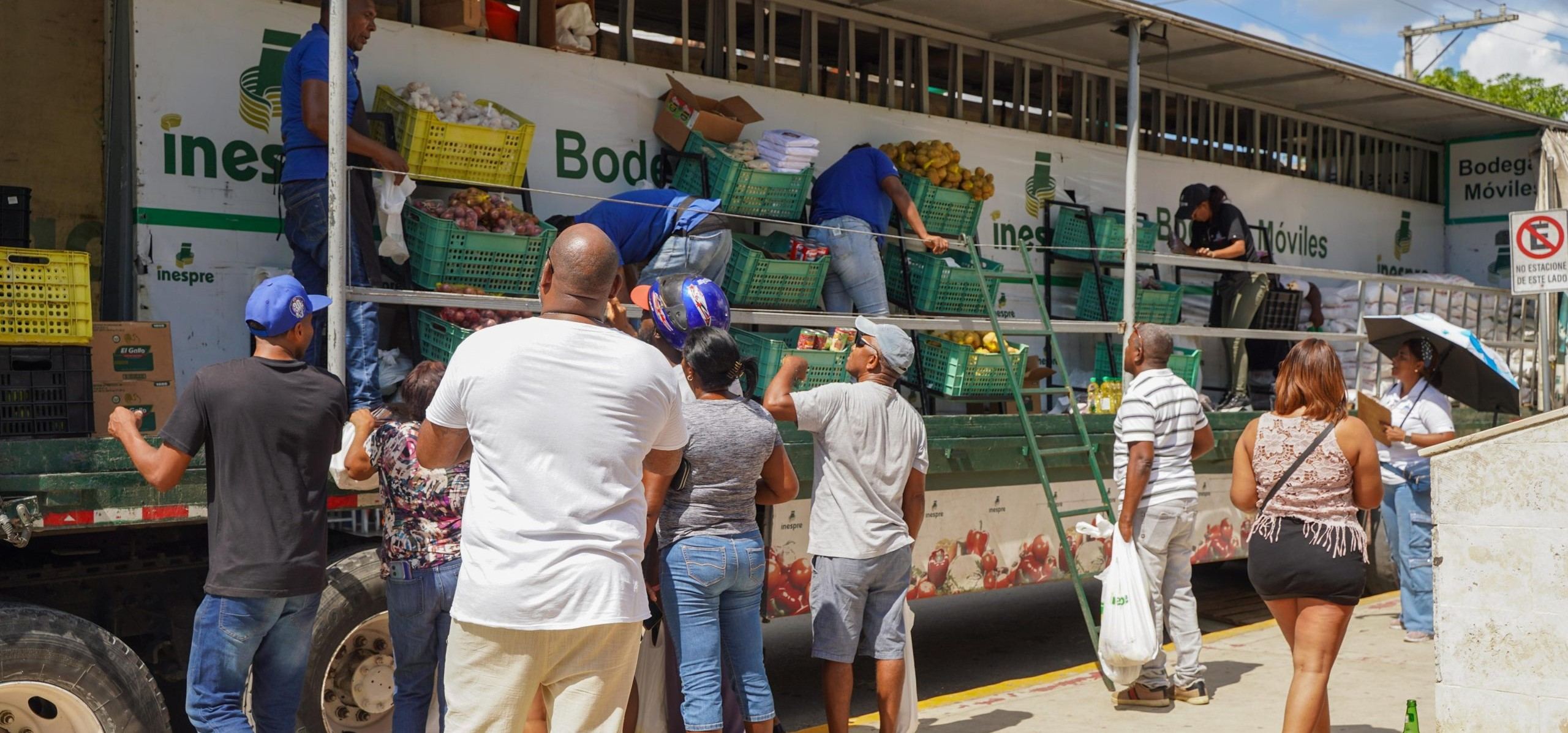 San Antonio de Guerra, provincia Santo Domingo. – Cientos de residentes de distintos sectores del municipio de Guerra aprovecharon el sábado 4 de octubre las ofertas especiales en productos de la canasta básica familiar, en la patana móvil instalada en el marco de la ejecución del programa Ruta Alimentaria del Inespre.