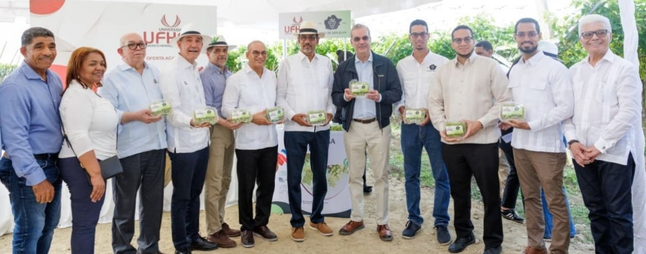 De igual forma, el presidente Luis Abinader visitó el proyecto Uvas San Juan, una iniciativa privada que forma parte del Plan San Juan, y que representa la primera producción certificada de uvas sin semillas en la República Dominicana, cuya primera cosecha comercial será lanzada en diciembre.