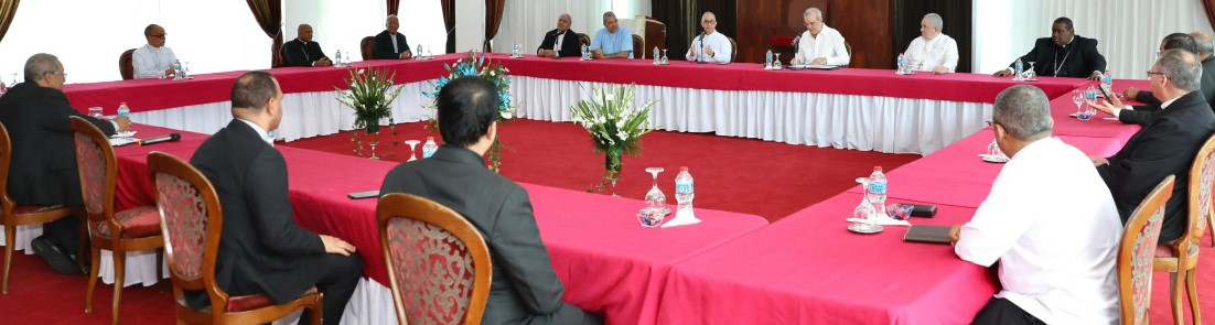 Santo Domingo Este.- El presidente Luis Abinader sostuvo un almuerzo ayer viernes 28 de noviembre con los miembros de la Conferencia del Episcopado Dominicano (CED), en un encuentro orientado a continuar impulsando acciones conjuntas en favor del bienestar social del país.